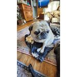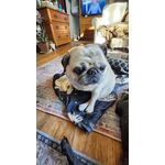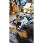 Cleo came to me after many many calls to the owner. Whenshe arrived at my work, all the staff couldn't keep their hands off her.She was one of my best friends to me and her pug roommate Juhls. The 2 of us are presently lost without her. Please send me your barks from up there. LOVE you 😍.